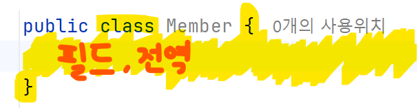 ํด๋์ค ๋ฒ์์ ๋ณ์๋ฅผ ์ ์ธํ ์ ์์ผ๋ฉฐ ์ด๋ฅผ ์ ์ญ ๋ณ์๋ผ๊ณ ํจ.