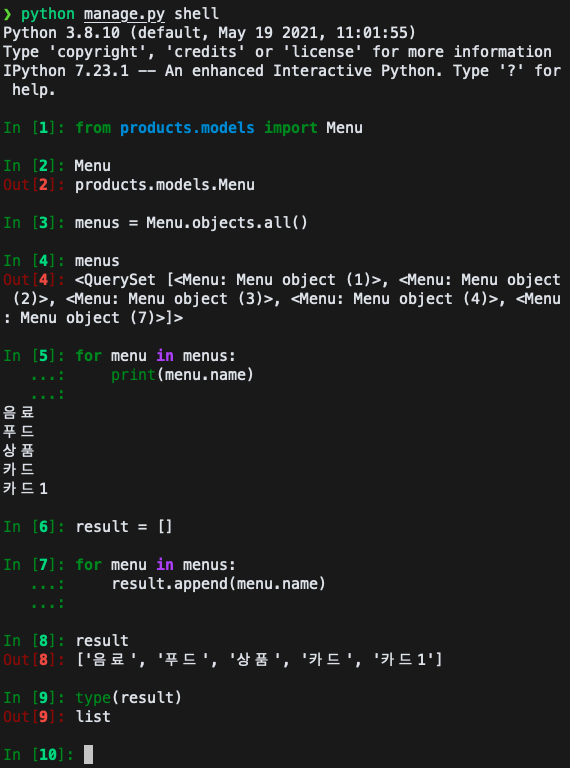 먼저 django shell에가서 잘 작동되는지 확인해보고 vscode를 짜는걸 추천하다.