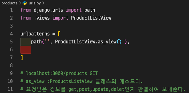 path(' ')인 이유는 products다음에 경로가 없기 때문이다.