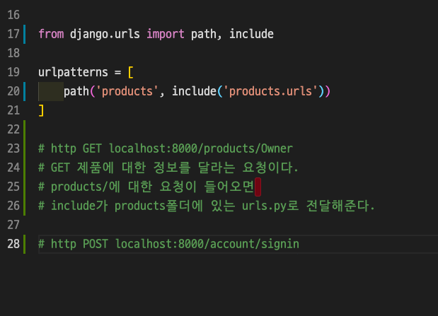setting.py에 있는 url.py은 요청에대한 처리를 할수없기때문에 app 폴더 안에 urls.py를 새로 만들어