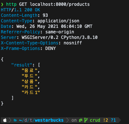 westarbucks라는 이름의 장고 프로젝트 2번째시간