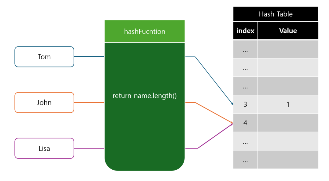 이렇게 된 경우를 Hash Collision 해시 충돌이라고 한다.