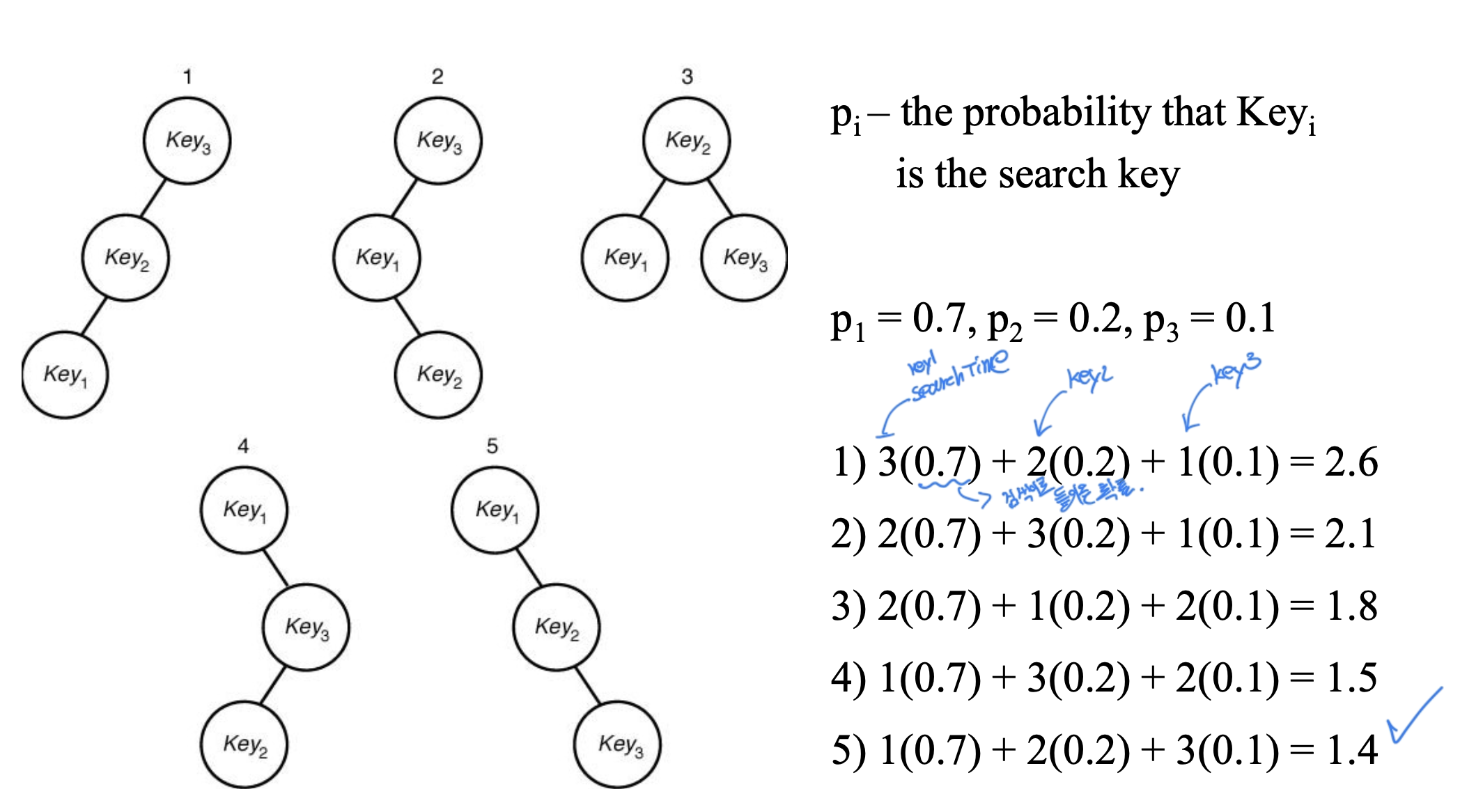 예시를 보면 5번 이진 트리가 가장 탐색 비용이 적은 것을 알 수 있다.