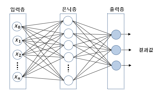입력층과 출력 층 사이에는 하나이상의 뉴런 층이 존재할 수 있으며, 은닉층의 각 뉴런은 이전 층에서의 뉴런으로 부터 입력을 받고 출력을 생성한다.