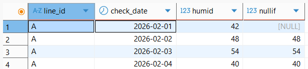 SELECT line_id, check_date , humid, NULLIF(humid, 42)