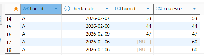 SELECT line_id, check_date , humid, coalesce(humid, 60)