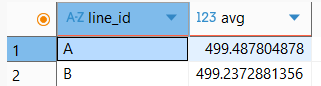 -- qa_result, product_info 생산 결과와 정보 조인하여 line_id별 평균 중량 구하기