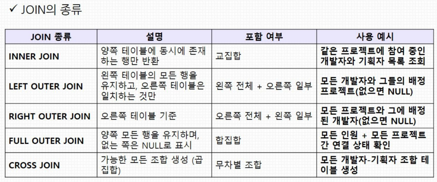 테이블이 두 개 이상인 경우 테이블을 합치거나 정보를 조합해야 할 때 사용