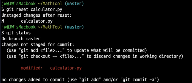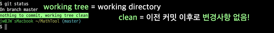 -- unmodified : 최신 커밋의 모습과 비교했을 때 바뀐게 없는 상태. 커밋 직후 working directory 안의 모든 파일이 이상태임