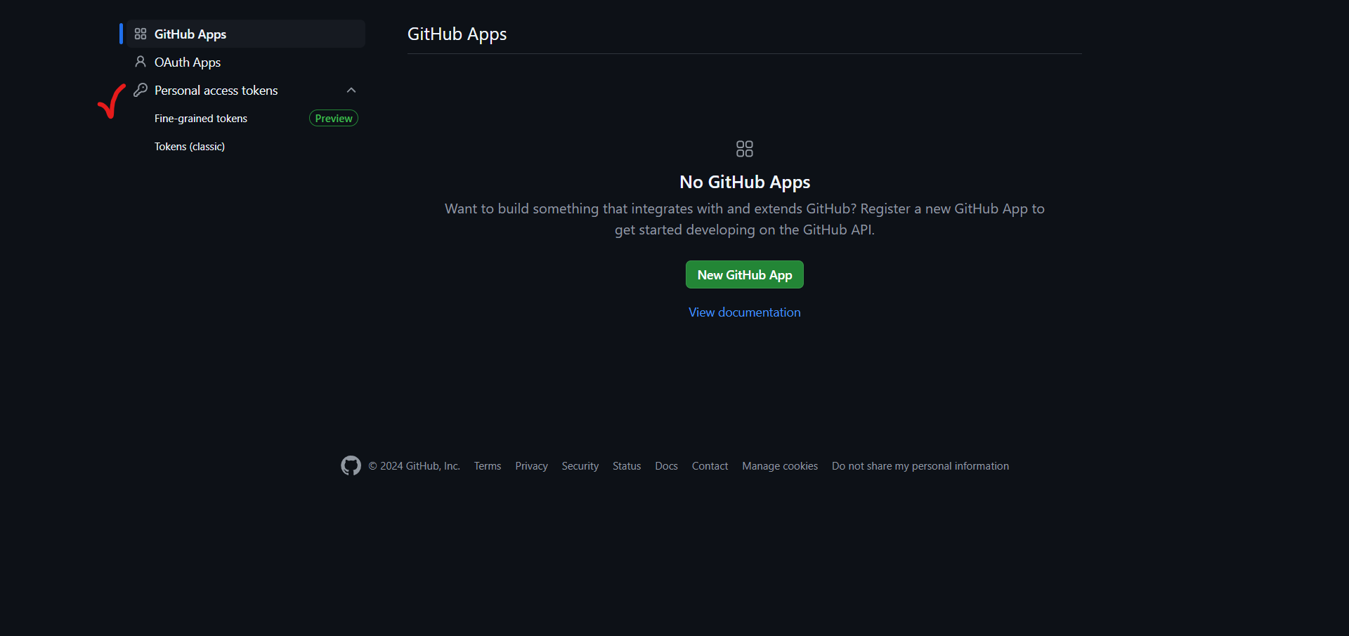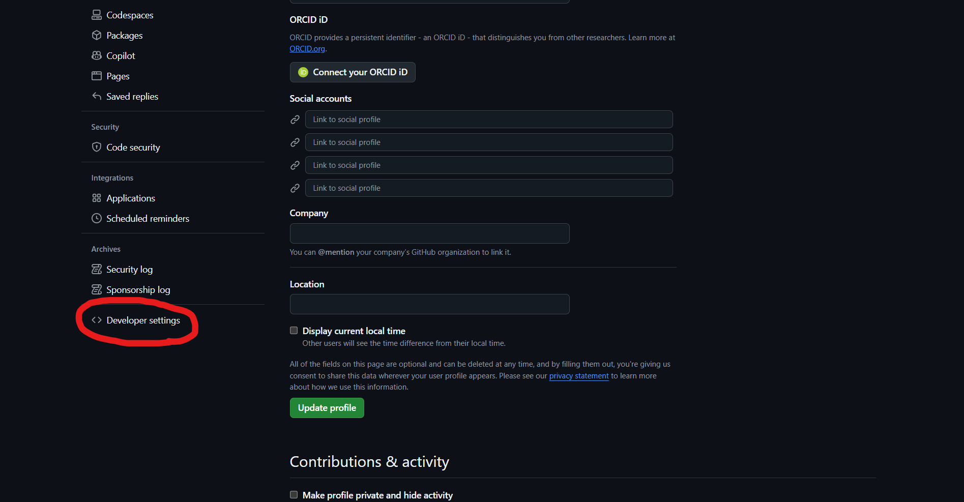 깃허브에 들어가 내 프로필 - 좌측 하단에 Developer settings에 들어간다.