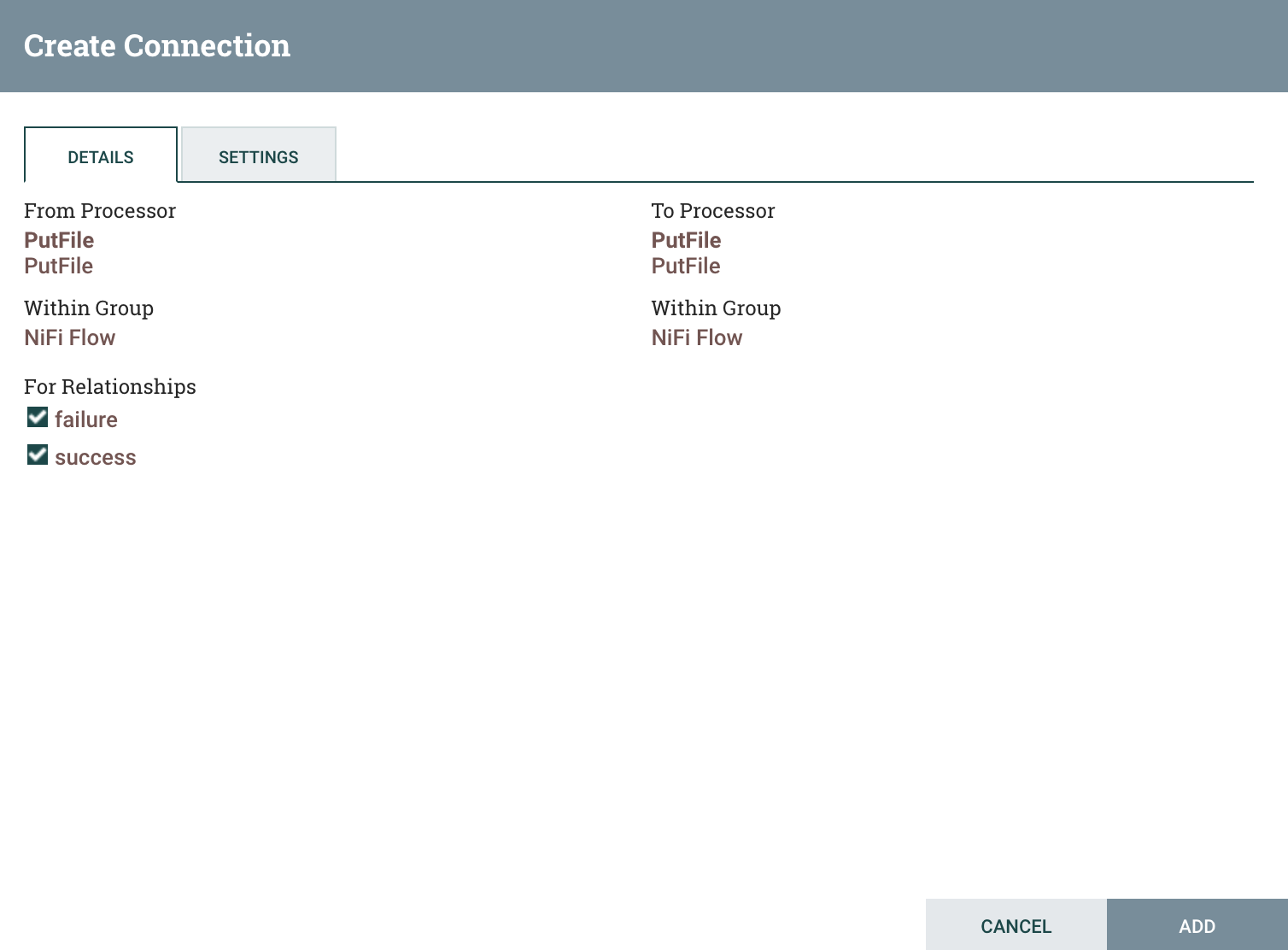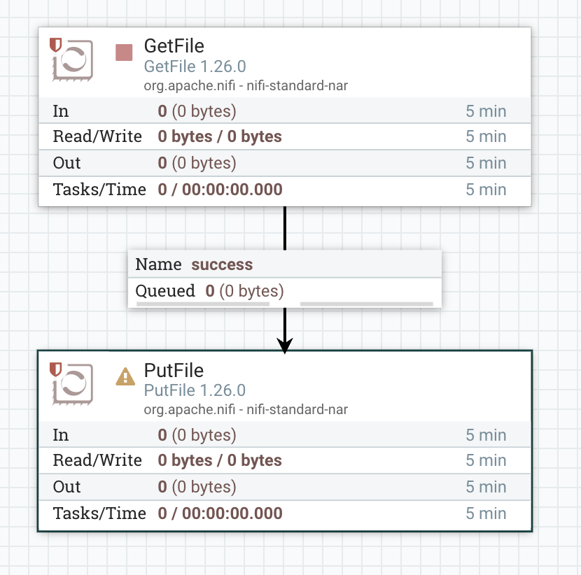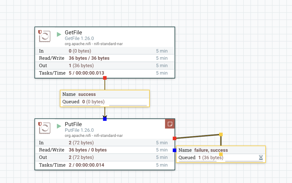 그 다음, GetFile에서 PutFile로 드래그해서 연결을 한다.
