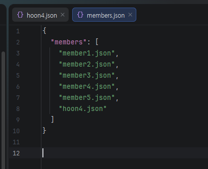 memmbers 폴더 안의 member4.json파일을 hoon4.json으로 이름바꿔서 복제