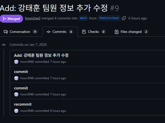 git commit -m "Add:팀원 정보 추가"