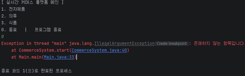 이걸 해결했더니 0으로 종료할때 예외처리가 되어버린다.