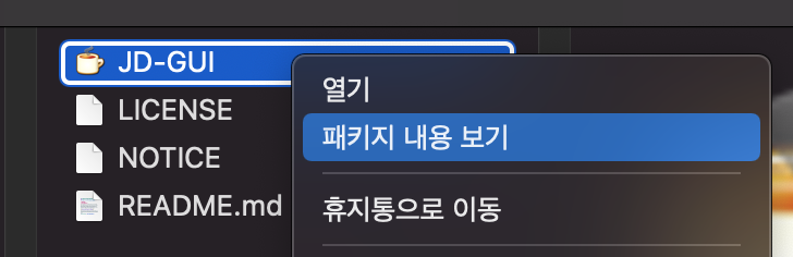 1. JD-GUI 오른쪽 클릭해서 패키지 내용 보기 클릭