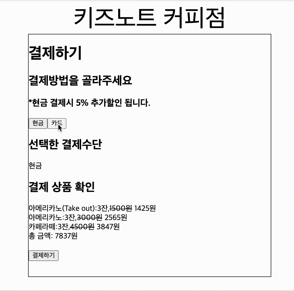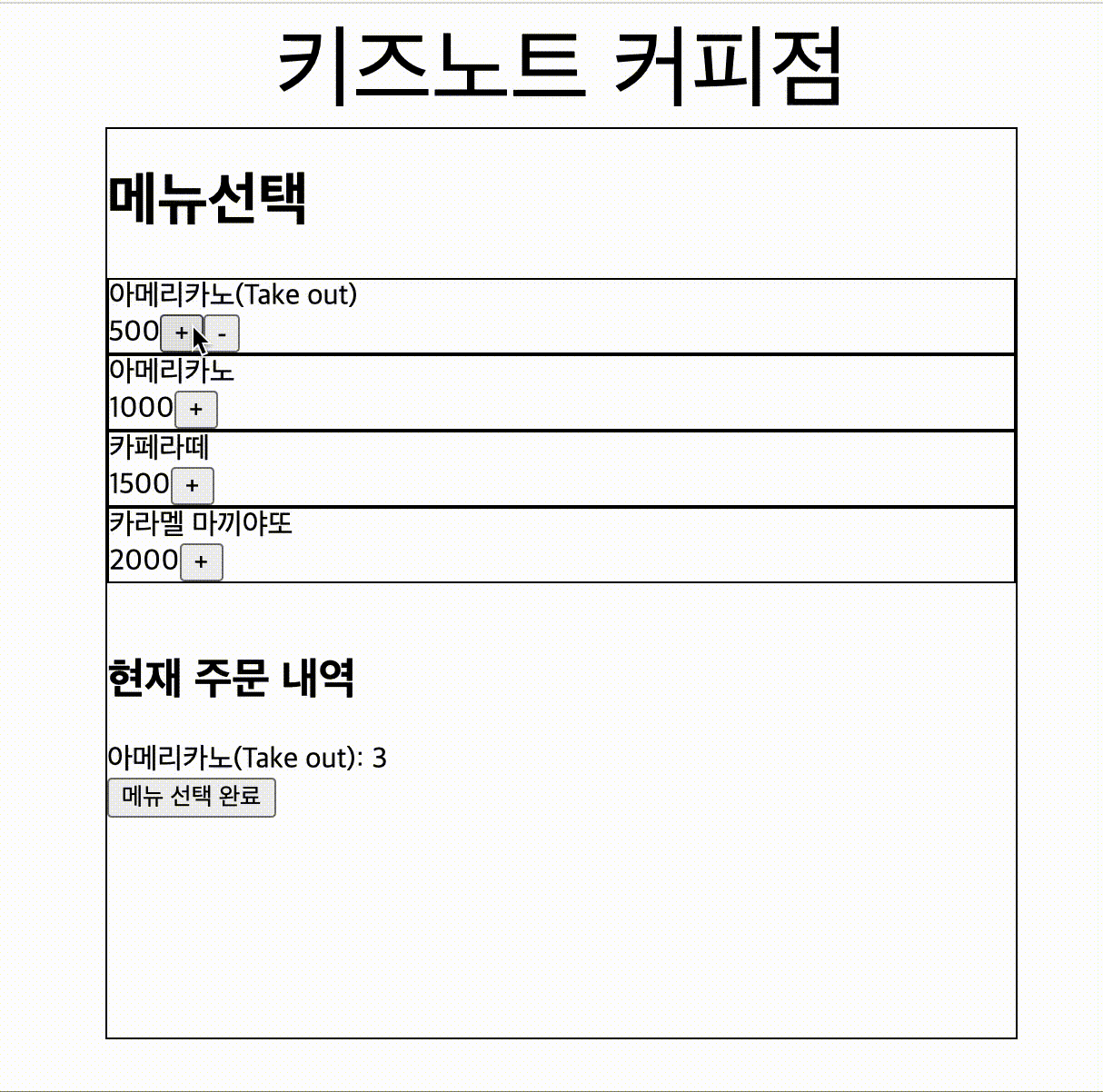 state로 관리되는 cart변수에 기존 값을 그대로 두고 특정 메뉴의 수량만 바꾸는 코드를 짜는데 생각보다 조금 시간이 걸렸지만, 차근차근 디버깅해보며 성공했다.