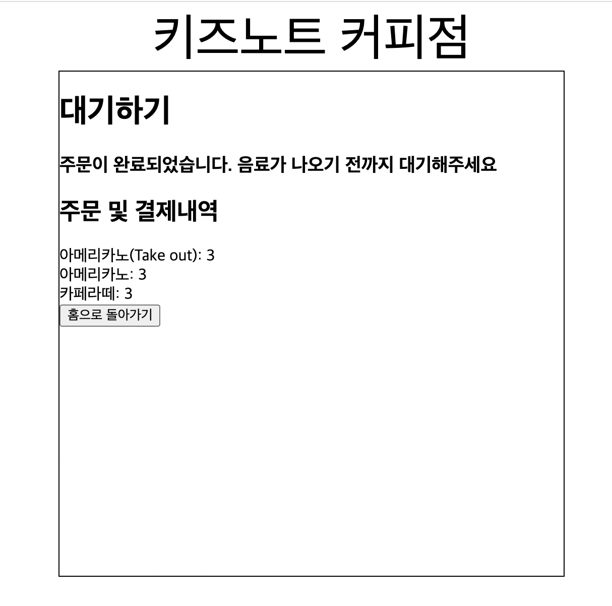 홈으로 돌아가면 모든 state는 초기화되고 주문 프로세스를 처음부터 다시 시작할 수 있다.