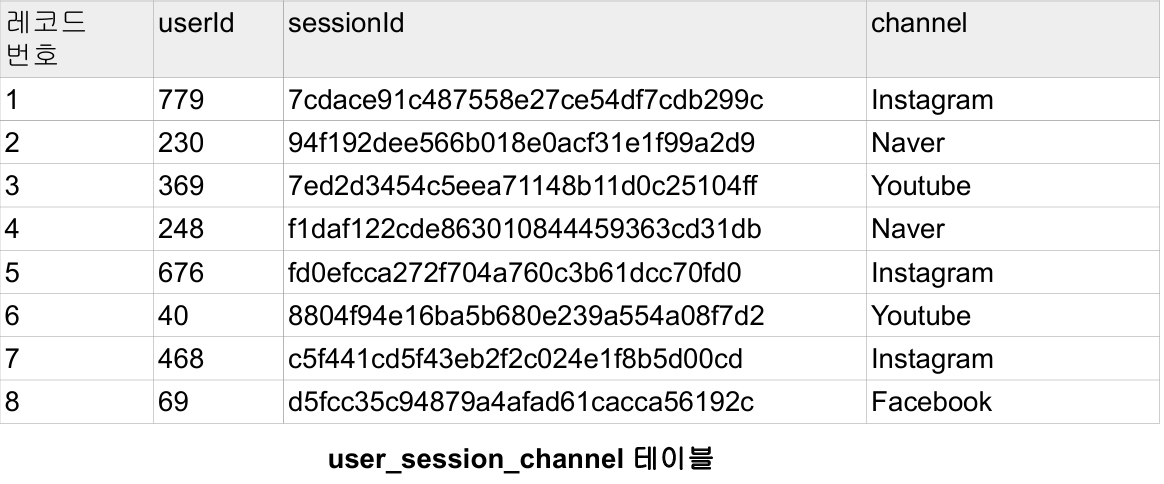 user_session_channel 테이블session_timestamp 테이블