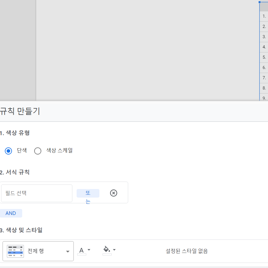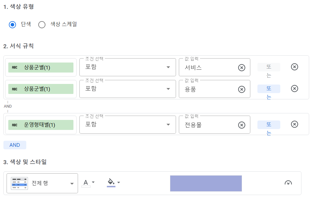 해당 표의 스타일에서 조건부 서식에 추가 누르게 되면 밑에 사진처럼 뜨게 됩니다.