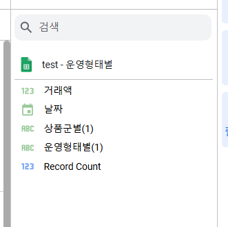 측정항목은 파란색필드로 표시됩니다.(다만 태블로에서는 측정값이 아닌 연속형이면 초록색을 표시합니다.)