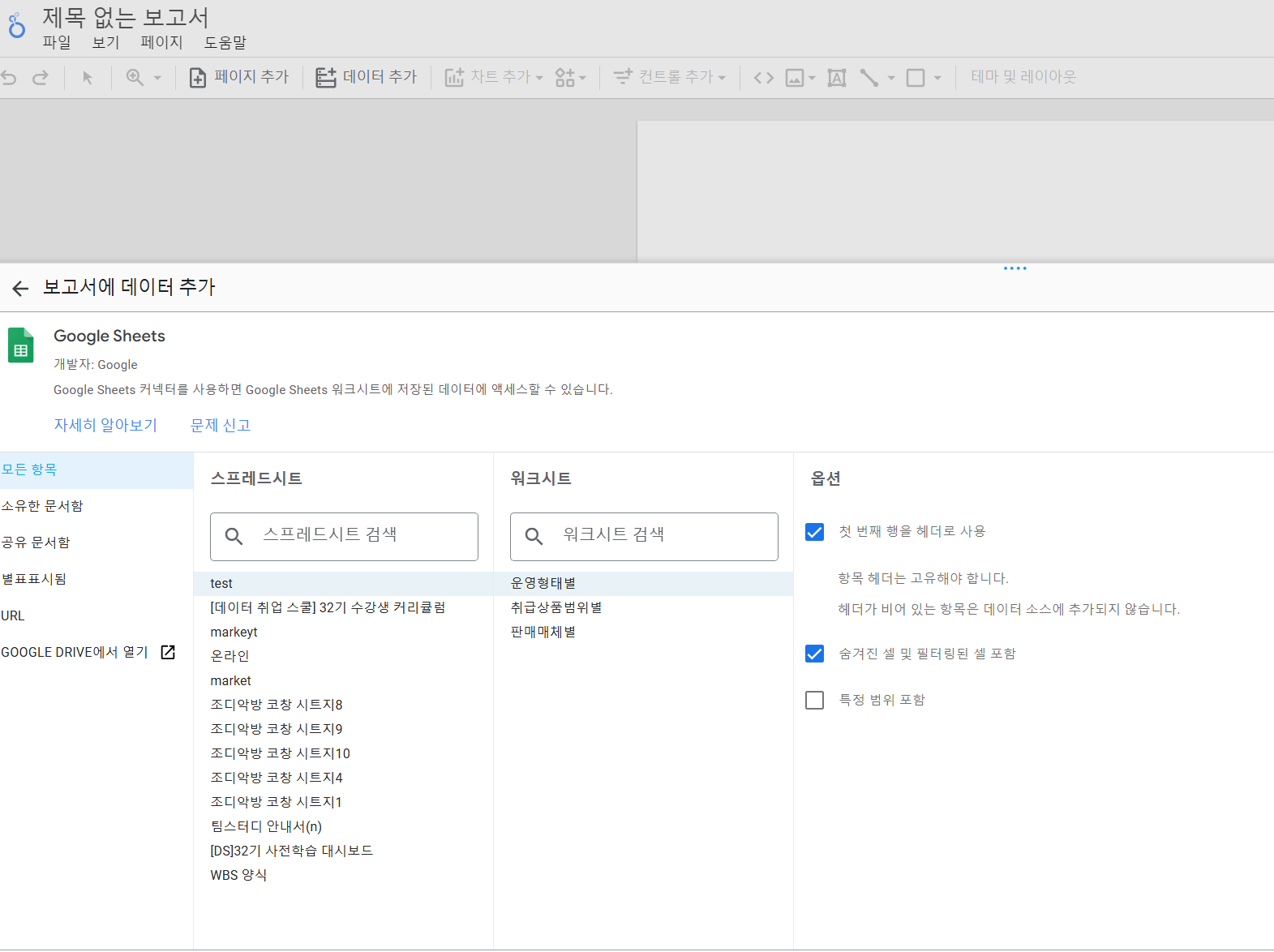 데이터 추가:새로운 데이터 소스를 보고서에 추가하는것.