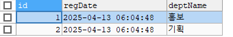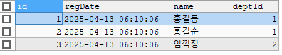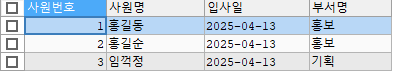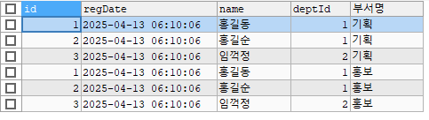 SELECT emp.id AS '사원번호', emp.name AS '사원명', DATE(emp.regDate) AS '입사일', dept.deptName AS '부서명' FROM emp