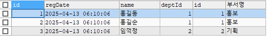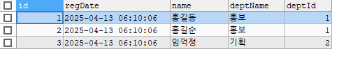 SELECT emp.*, dept.id, dept.deptName AS '부서명' FROM emp