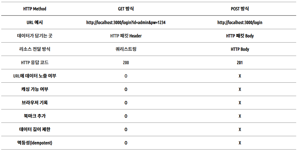 - HTTP 요청 메소드 중 GET 방식과 POST 방식은 웹 개발에서 가장 많이 사용된다.