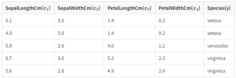 위의 붓꽃 품종 예측 데이터는 꽃받침과 꽃잎 길이와 넓이로부터 품종을 예측합니다. 로지스틱 회귀와 같이 시그모이드 함수를 적용한다면 setosa가 정답일 확률은 0.8, versicolor가 정답일 확률은 0.2, virginica가 정답일 확률은 0.4 등과 같은 출력을 얻게됩니다. 하지만 Softmax Regression은 품종 확률 합이 1인 예측값을 얻도록 합니다. 그리고 샘플 데이터가 입력으로 들어오면 모델이 setosa일 확률이 0.7, versicolor일 확률 0.05, virginica일 확률이 0.25로 예측값을 도출할 시에 setosa로 예측했다고 간주합니다.