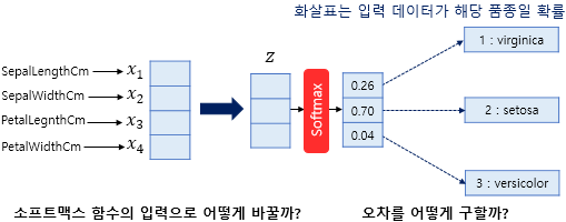 입력 벡터는 4차원인데 분류 클래스는 3차원이기에 차원 축소가 이뤄져야한다는 점