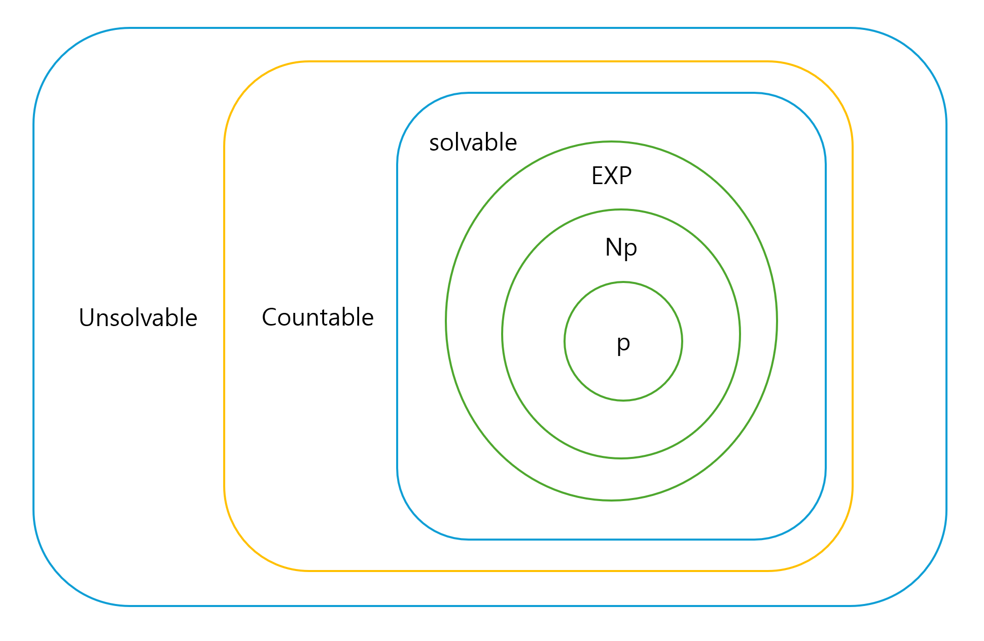 "P ⊆ NP ⊆ EXP ⊆ Solvable ⊆ Countable"