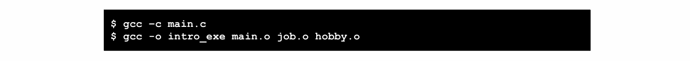 intro_exe는 job.o, hobby.o, main.o에 의존