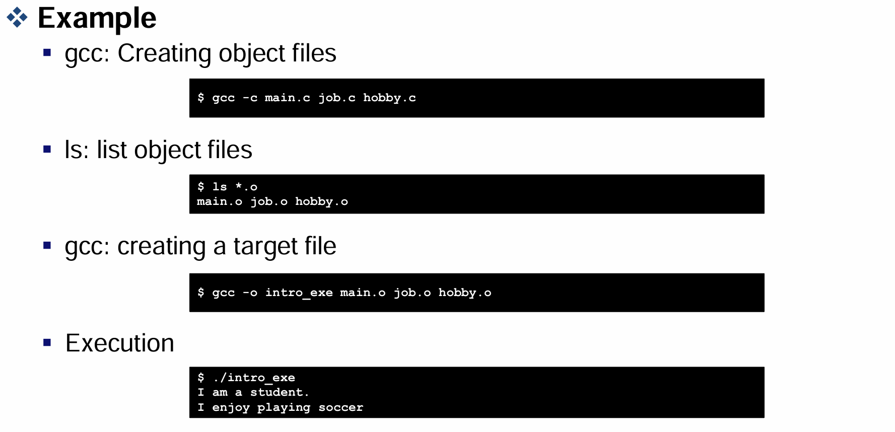 CC만 바꾸면 compiler 교체 가능TARGET만 바꾸면 executable 이름 변경 가능파일 수가 더 많아지면 object file 목록도 한 곳에서 관리하는 게 좋다.