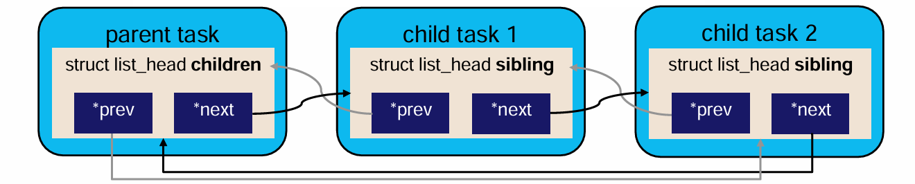 parentchildren (list)sibling (형제 task)Linux에서 process 상태는 task->state로 표현됨