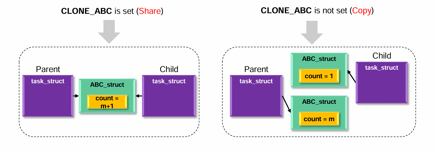 clone()은 어떤 자원을 공유할지 flag로 결정