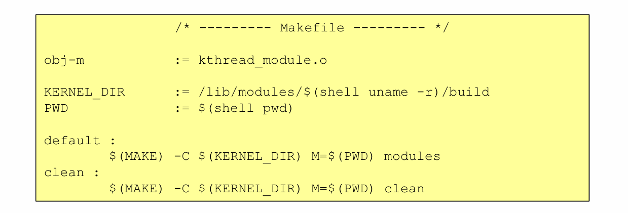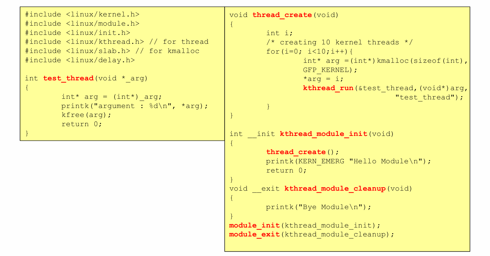 kernel module에서 kernel thread를 생성하는 예제이다.