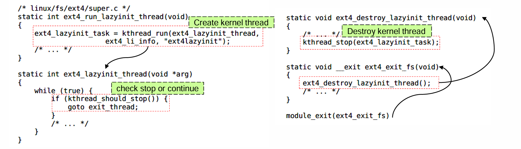 module 종료 시 ext4_destroy_lazyinit_thread()로 정리한다.