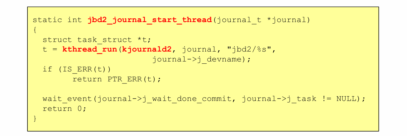 kthread_run()으로 journaling kernel thread를 생성한다.lazyinit 기능은 file system 생성 속도를 크게 향상시킨다.