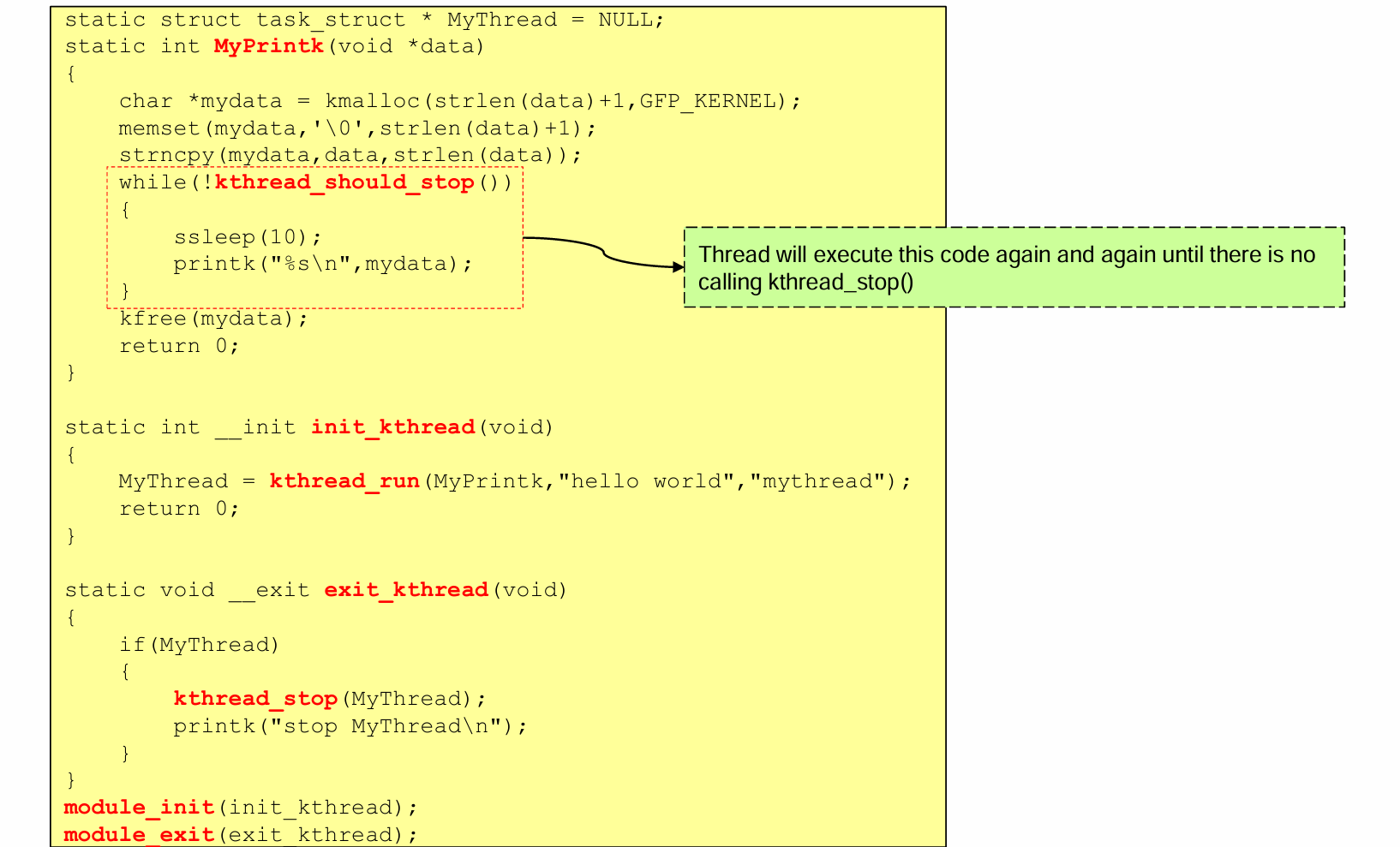 kthread_should_stop()이 호출되기 전까지init_kthread()