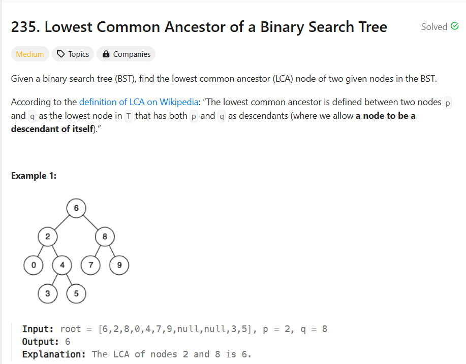 https://leetcode.com/problems/lowest-common-ancestor-of-a-binary-search-tree/description/