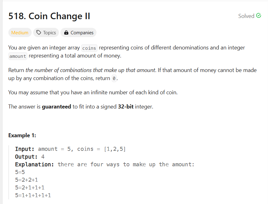https://leetcode.com/problems/coin-change-ii/