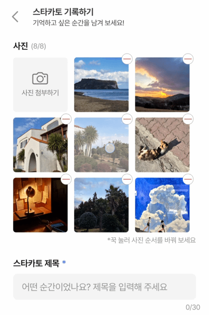 - 드래그로 사진 순서를 바꿀 수 있다.