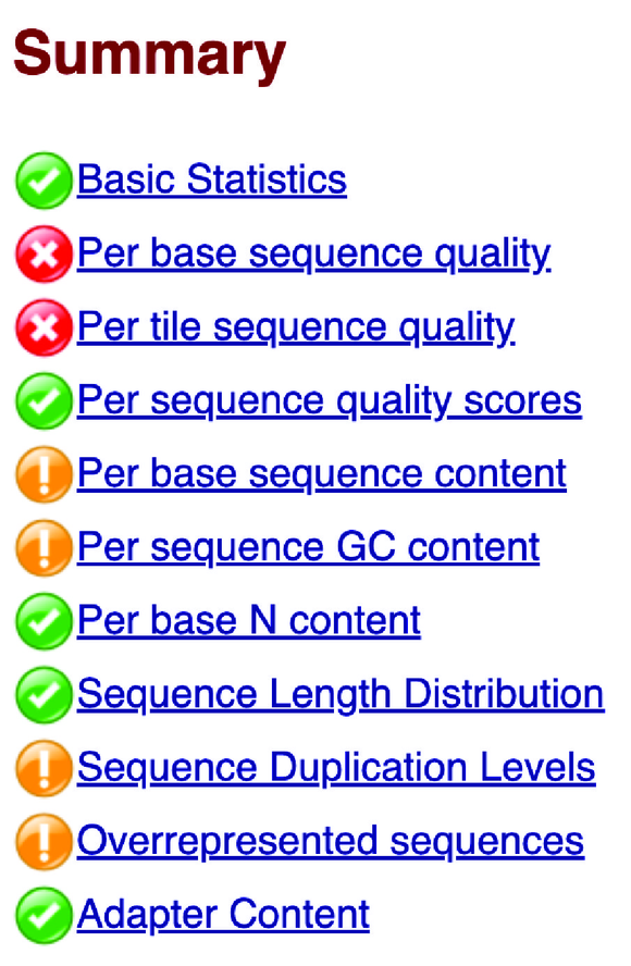 QC report는 각 항목에 대해 통과, 실패, 경고 등을 정리하여 보여준다.