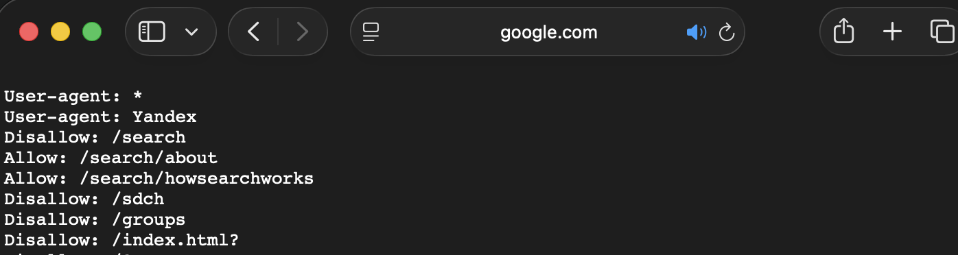 해당 파일은 항상 사이트의 루트 디렉토리 ( https://example.com/robots.txt ), 로봇 배제 표준을 따르는 일반 텍스트 파일로 작성되어야 한다.