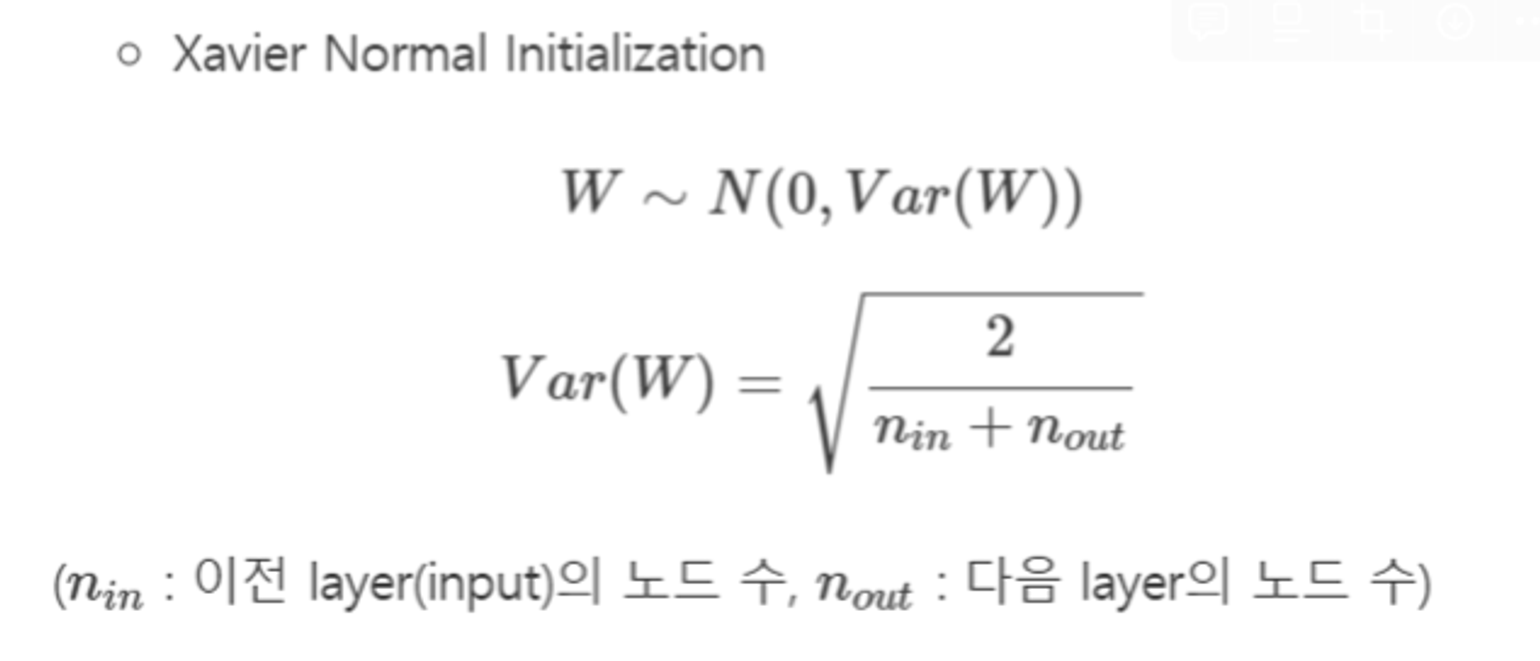 - Xavier Initialization는 여러 층의 기울기 분산 사이에 균형을 맞춰서 특정 층이 너무 주목을 받거나 다른 층이 뒤쳐지는 것을 막는다.