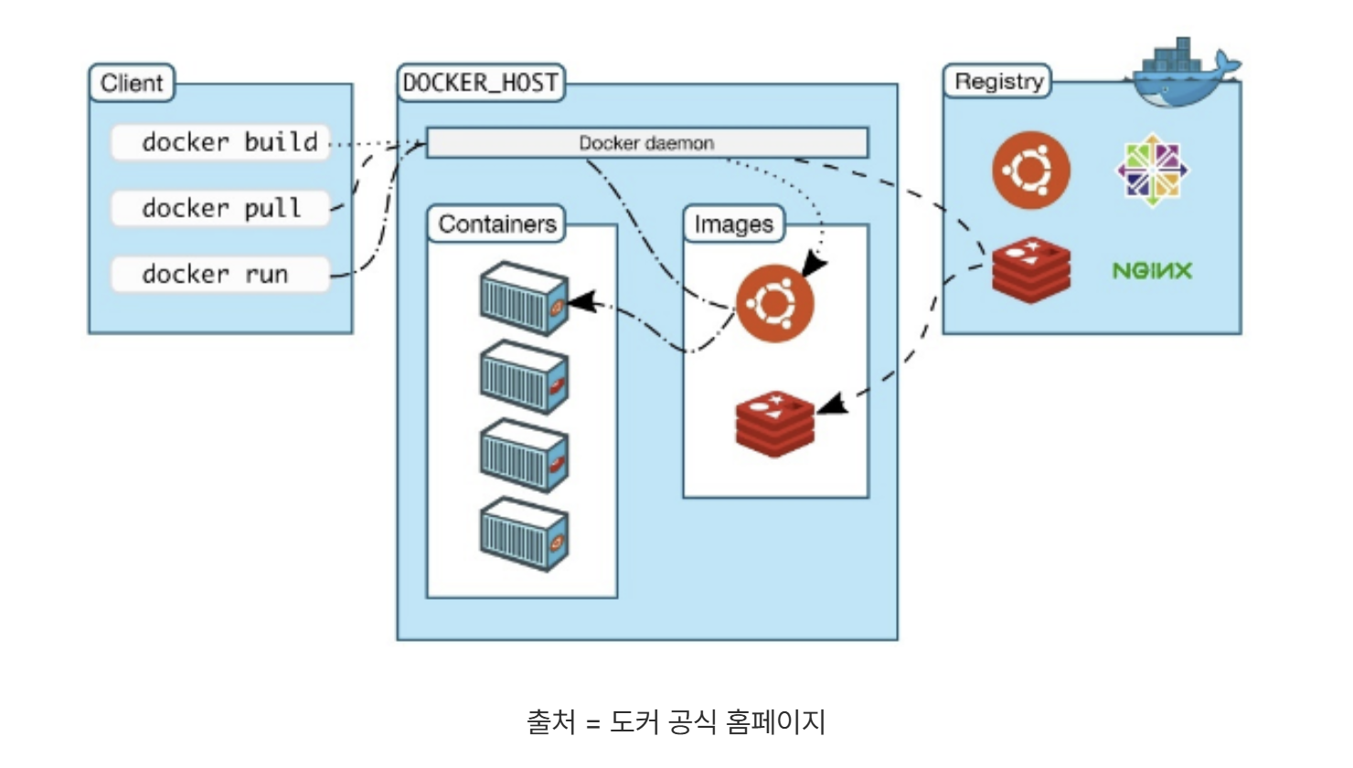 - Docker daemon과 통신하거나 Docker API 요청을 기다리고 이미지, 컨테이너, 네트워크, 볼륨 등을 관리하는 역할