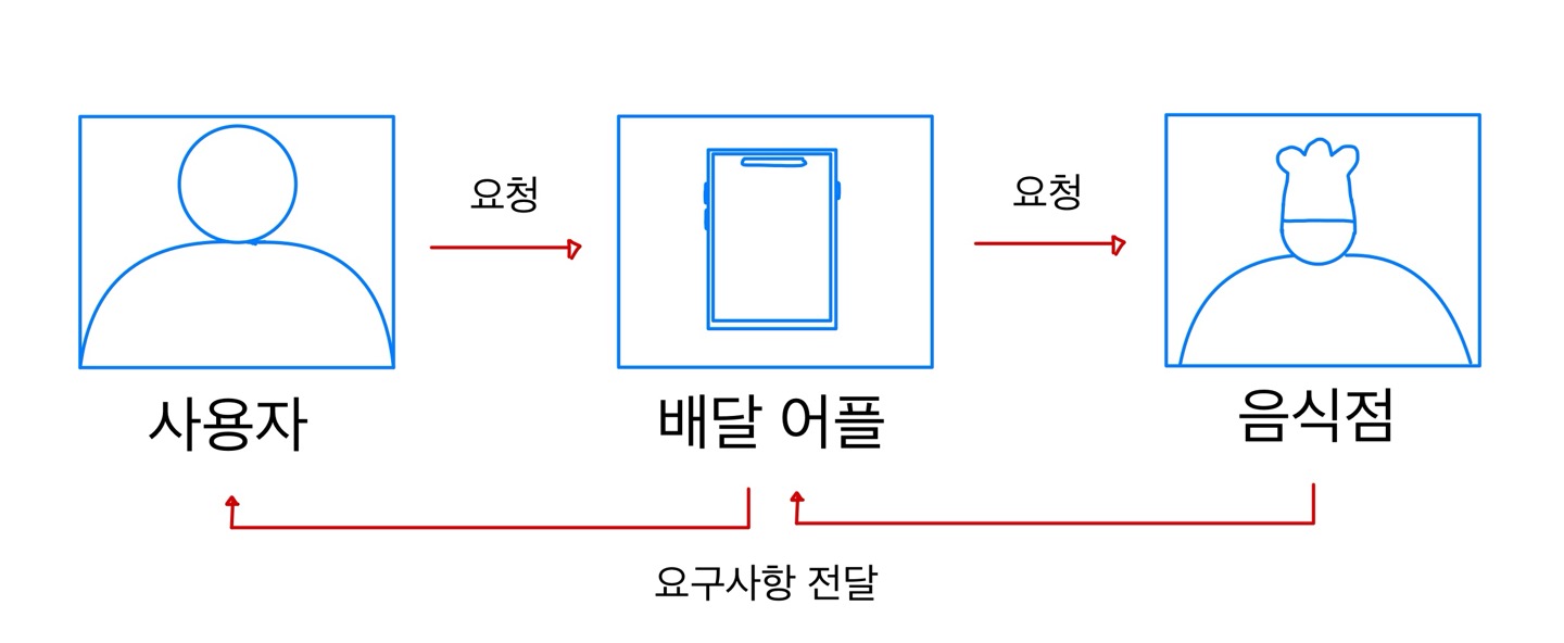 결과적으로, 배달어플(API)은 저와 음식점(응용프로그램) 사이에 중개자 역활을 하며, 정해진 형식에 따라 정보를 주고 받을 수 있도록 도와줍니다.