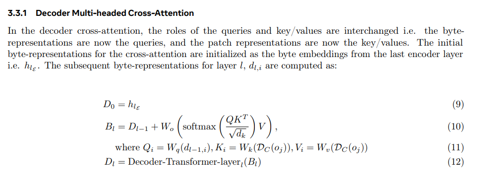 Transformer를 거쳐온 patch를 와 이전에 Decoding된 byte의 hidden state 가 같이 사용된다.