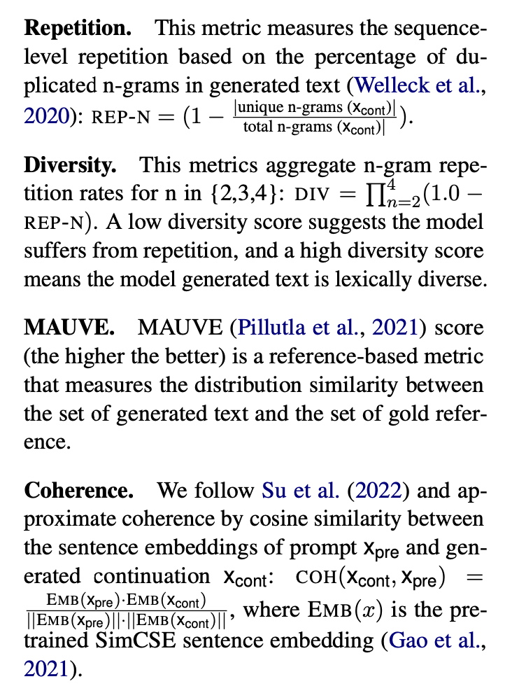 Open-ended text generation은 prompt가 주어졌을때, 유창하고 일관성 있는 대답을 하는 것을 목적으로 한다. 하지만 likelihood가 가장 높은 sequence를 찾는 decoding은 짧고 반복적이며 유창하지 않은 문장을 생성하는 경향이 있으며, 크기가 작은 LM일수록 그 경향이 더 뚜렷하다.