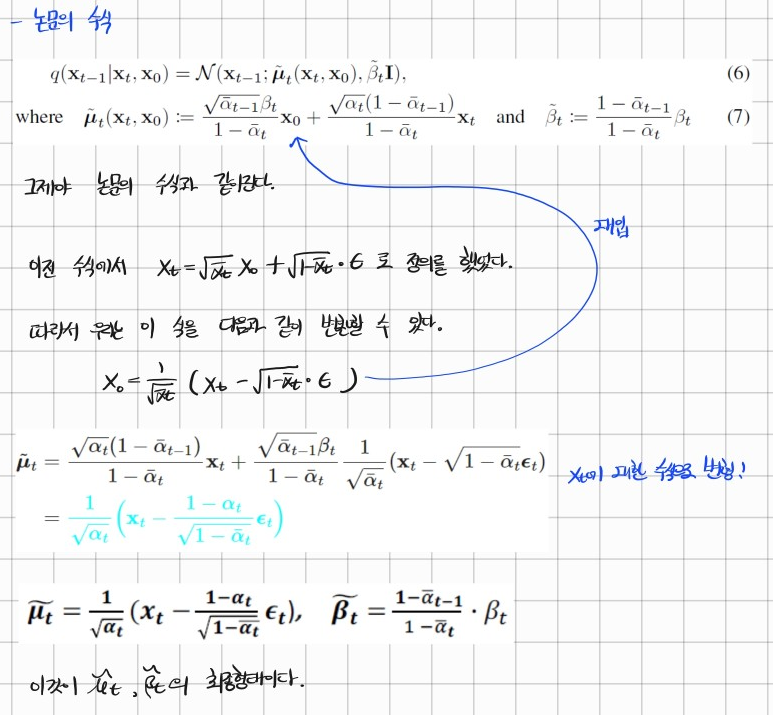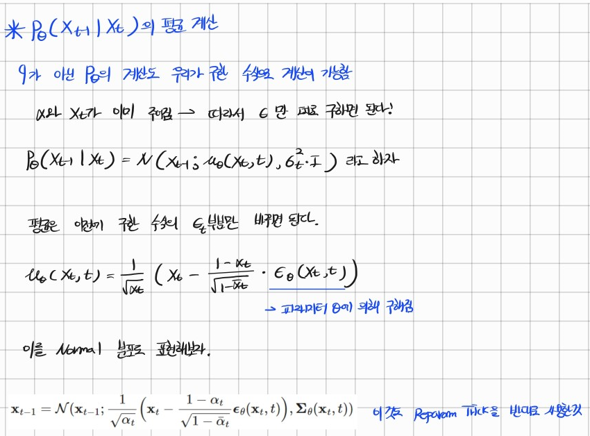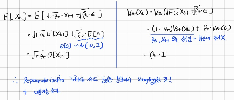 는 이기 때문 ( 는 Noise를 얼마나 섞어줄지에 대한 비율 -> 스케쥴링이 따로 존재하기 때문에 학습 가능한 파라미터가 아님 -> 분산이 상수가 된다.)